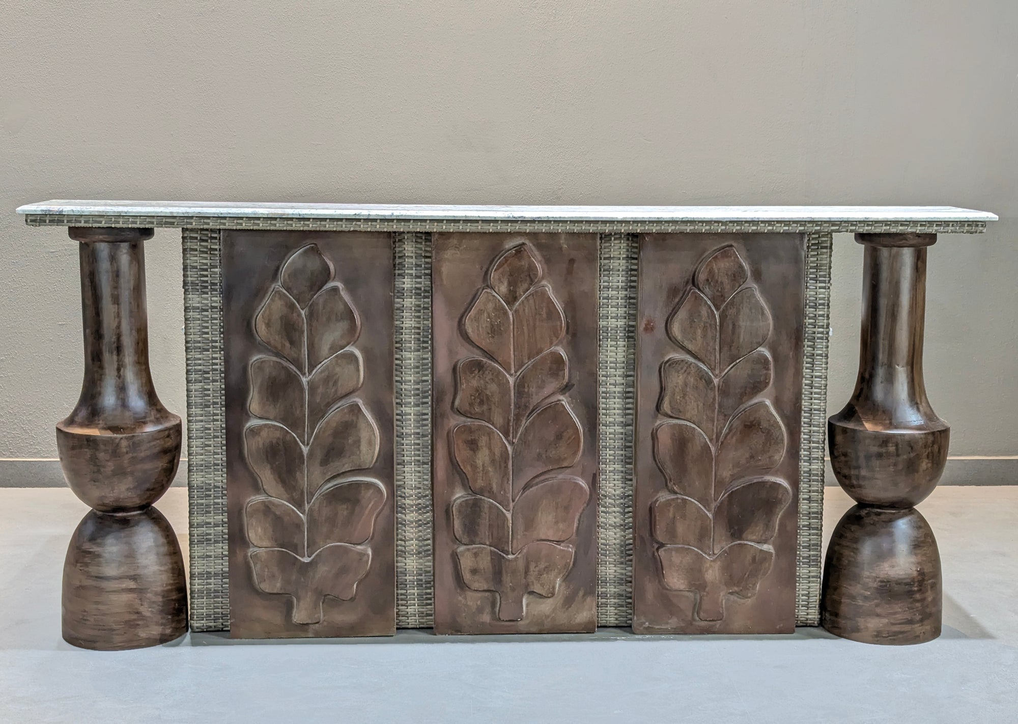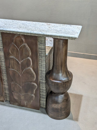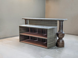 POWER COATED ALUMINUM FRAMESTRUCTURE IN OUTDOOR GRADE COMPOSITE ELEMENTS.FINEST EUROPEAN RATTANEXQUISITE STONE TOP