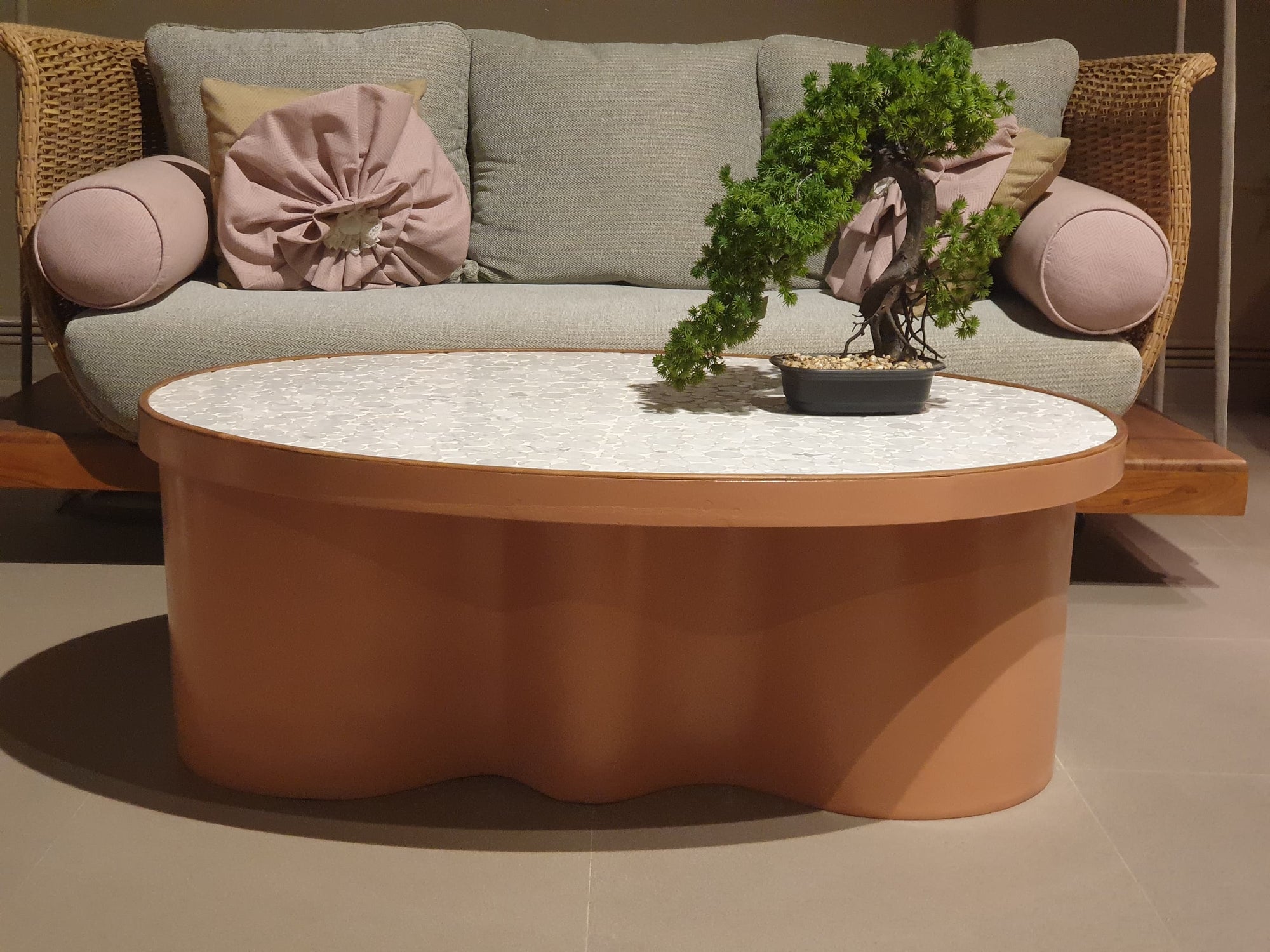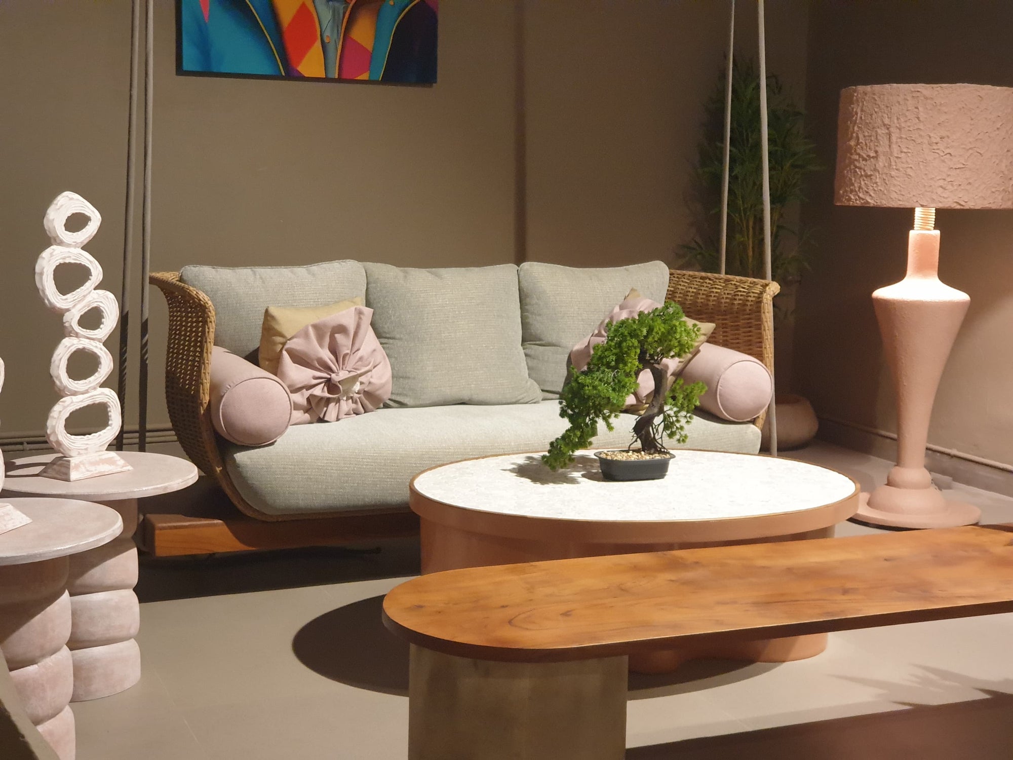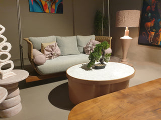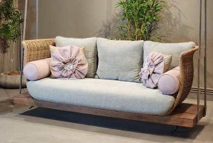 STRUCTURE IN POWDER COATED ALUMINUM FRAME.FINEST EUROPEAN RATTANWOODEN BASE.LUXURIOUS SOFT CUSHIONS IN THE FINEST FABRIC.