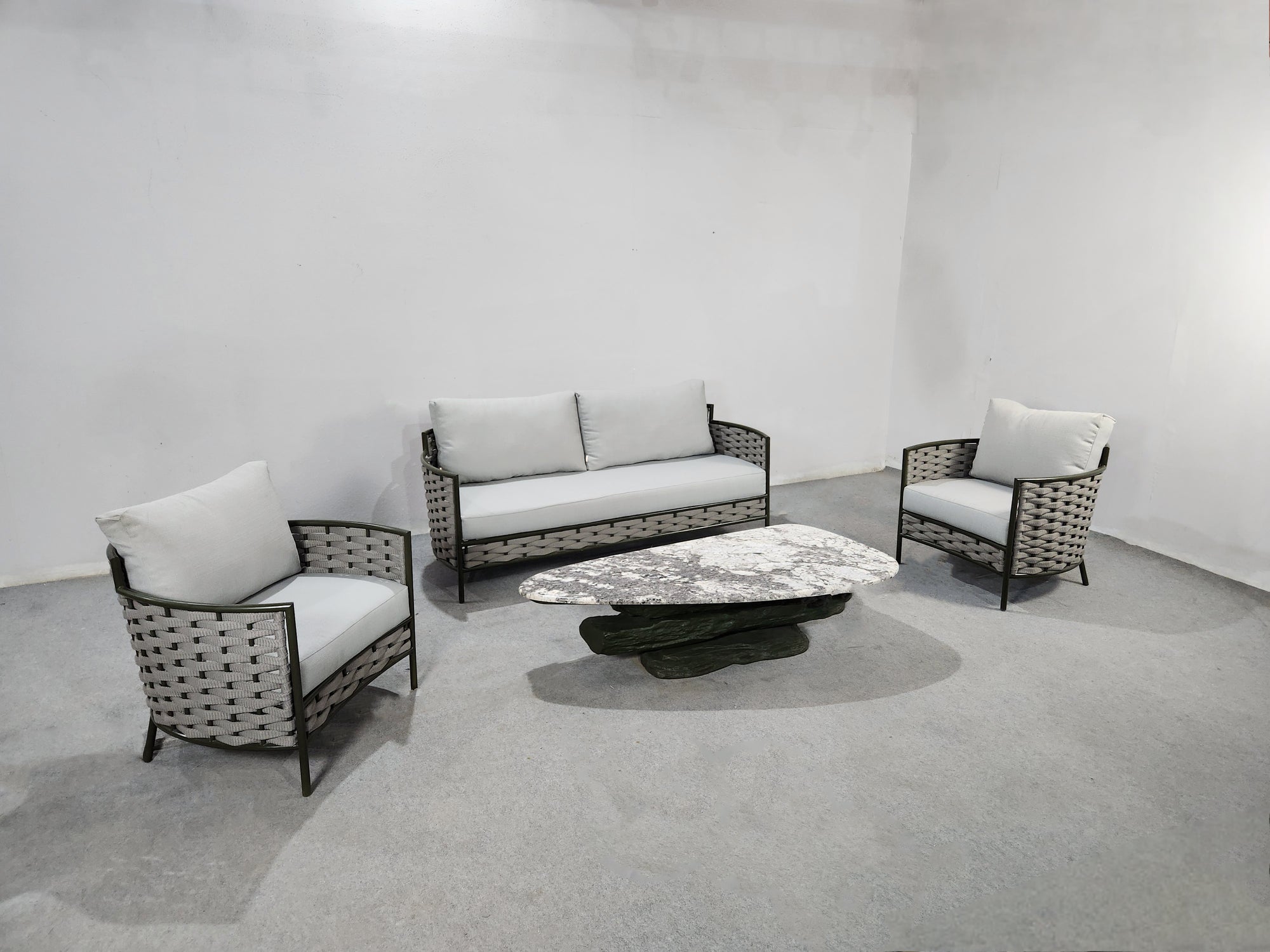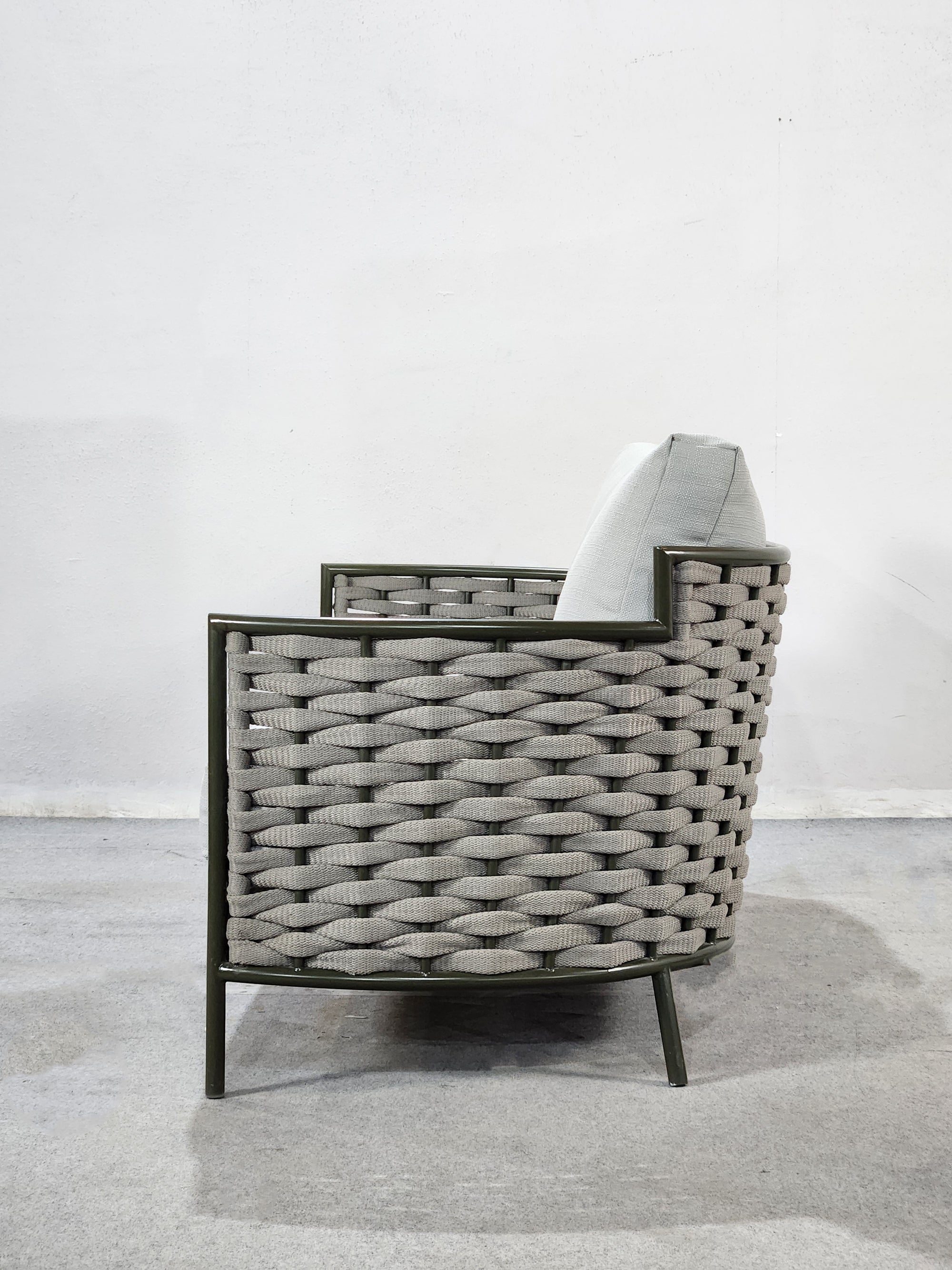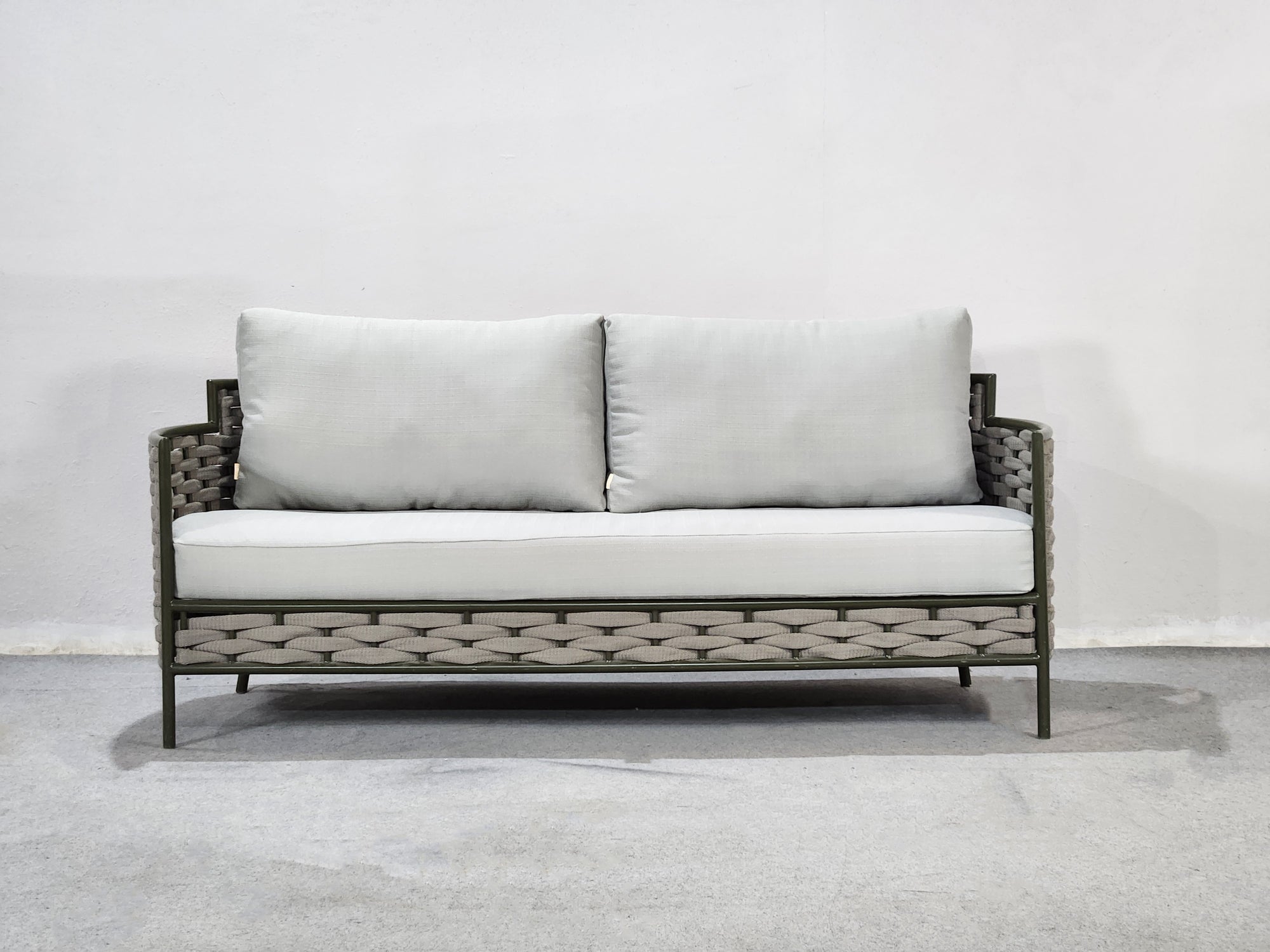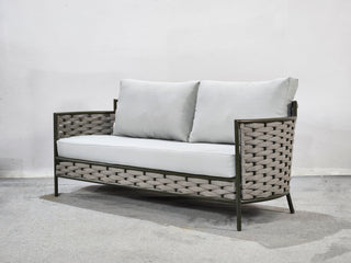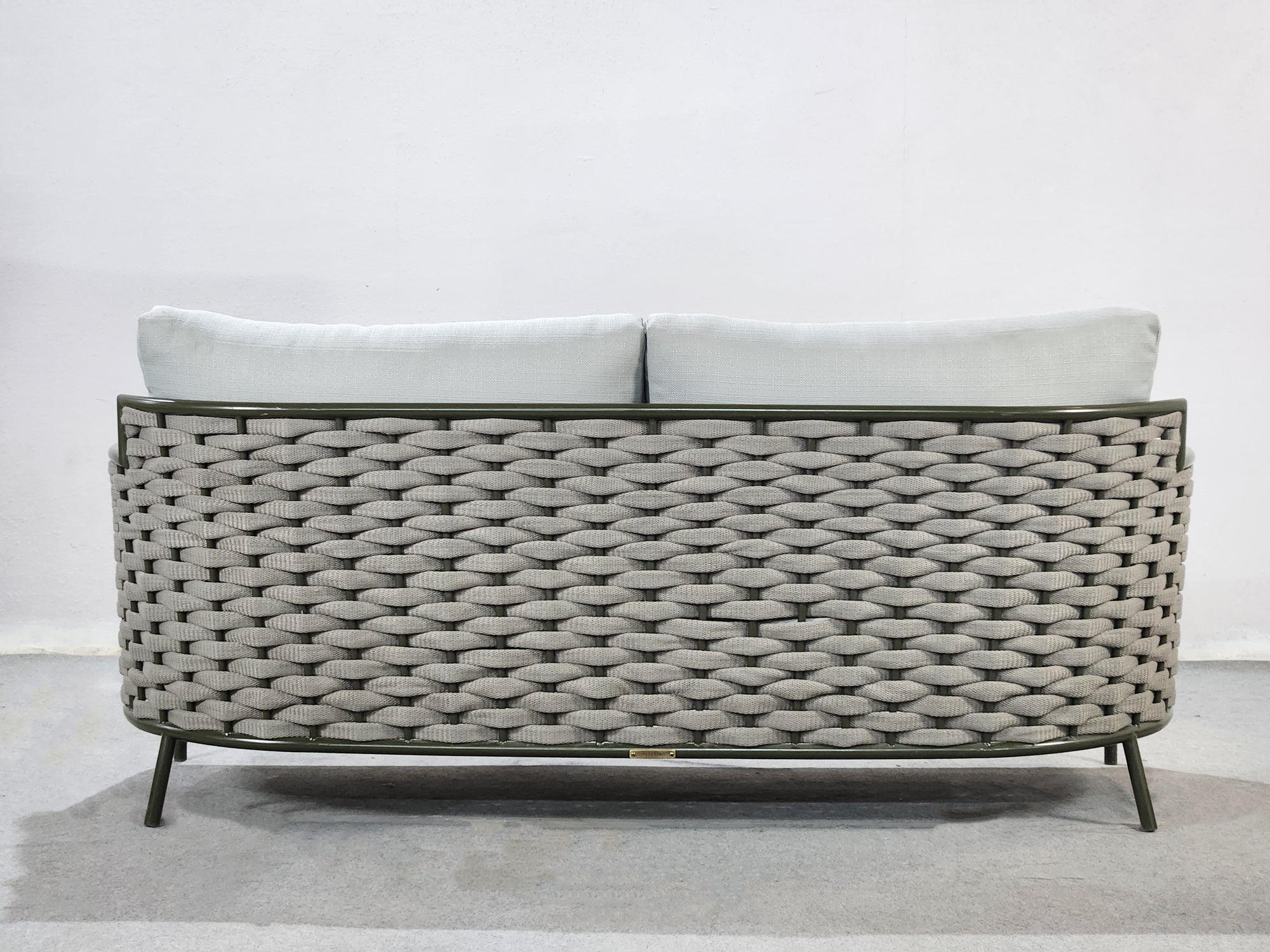 SOFASTRUCTURE IN POWDER COATED ALUMINIUM FRAME AND BRAID.LUXURIOUS SOFT CUSHIONS IN THE FINEST EUROPEAN FABRIC .