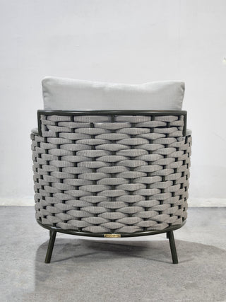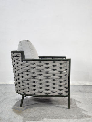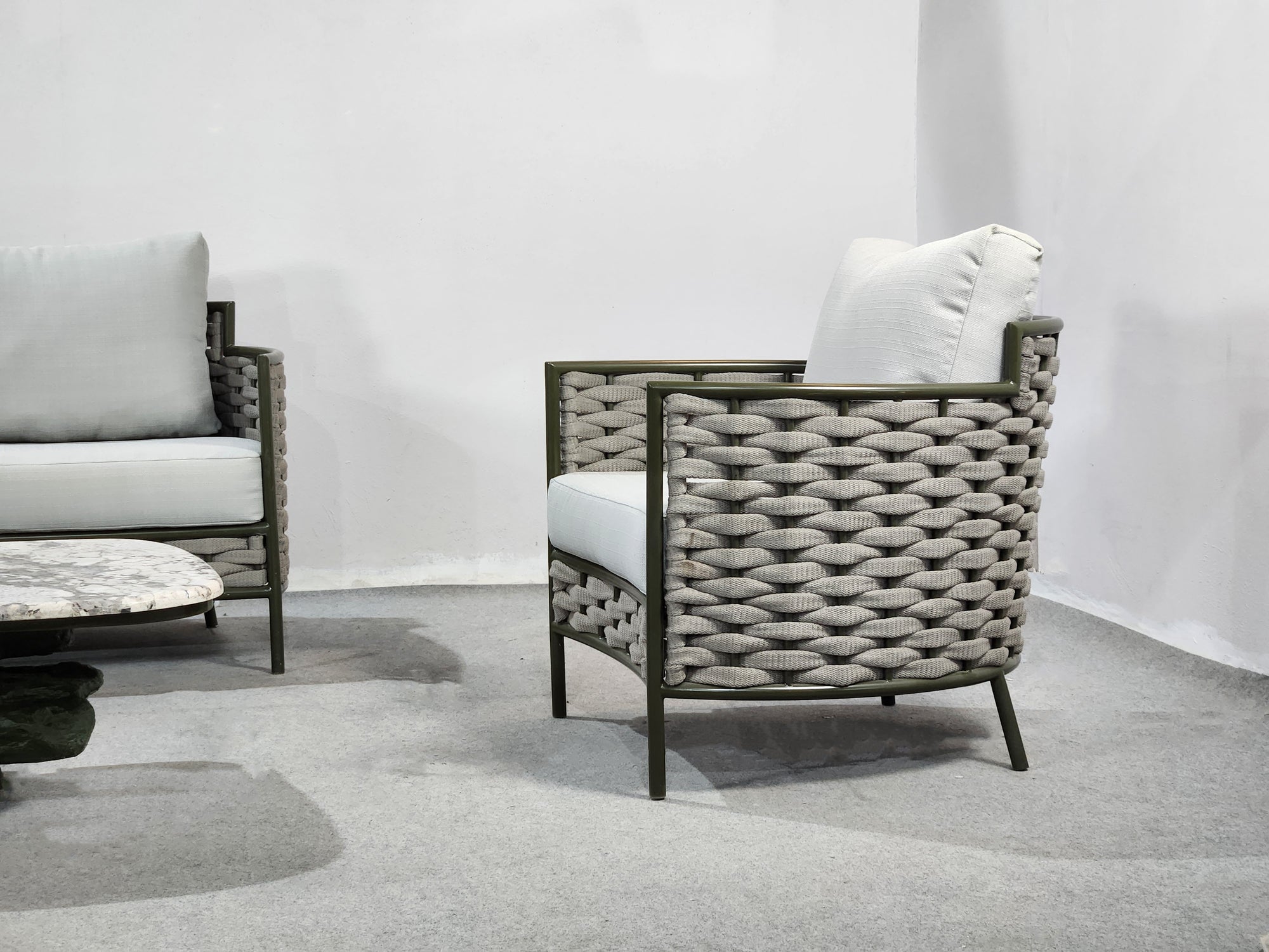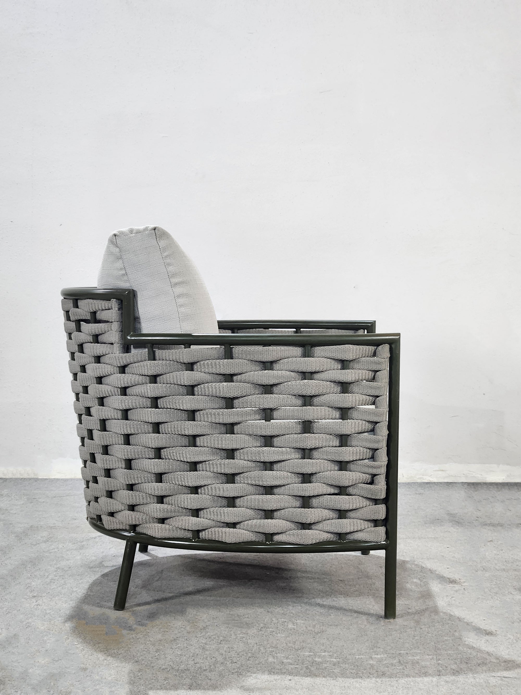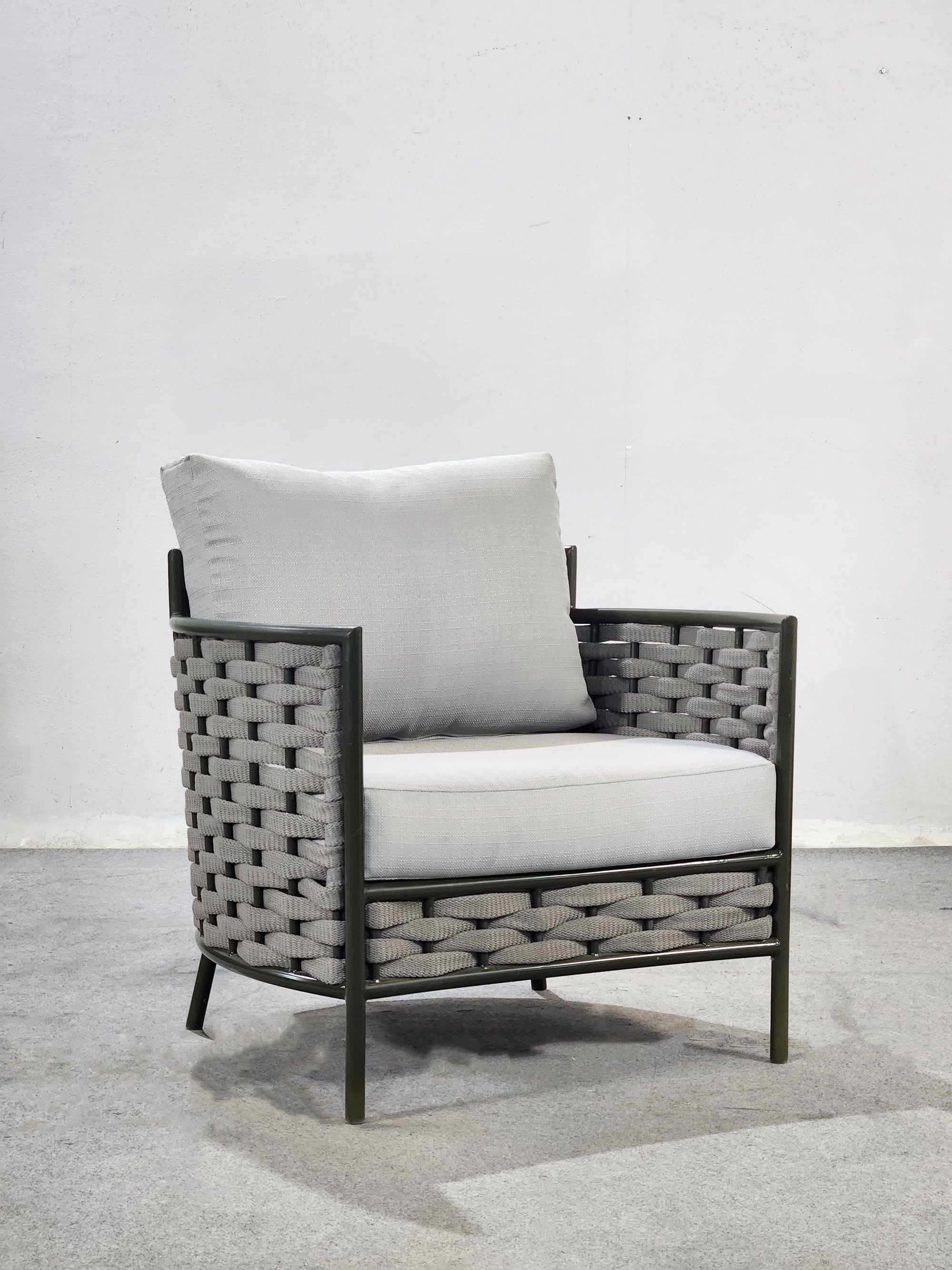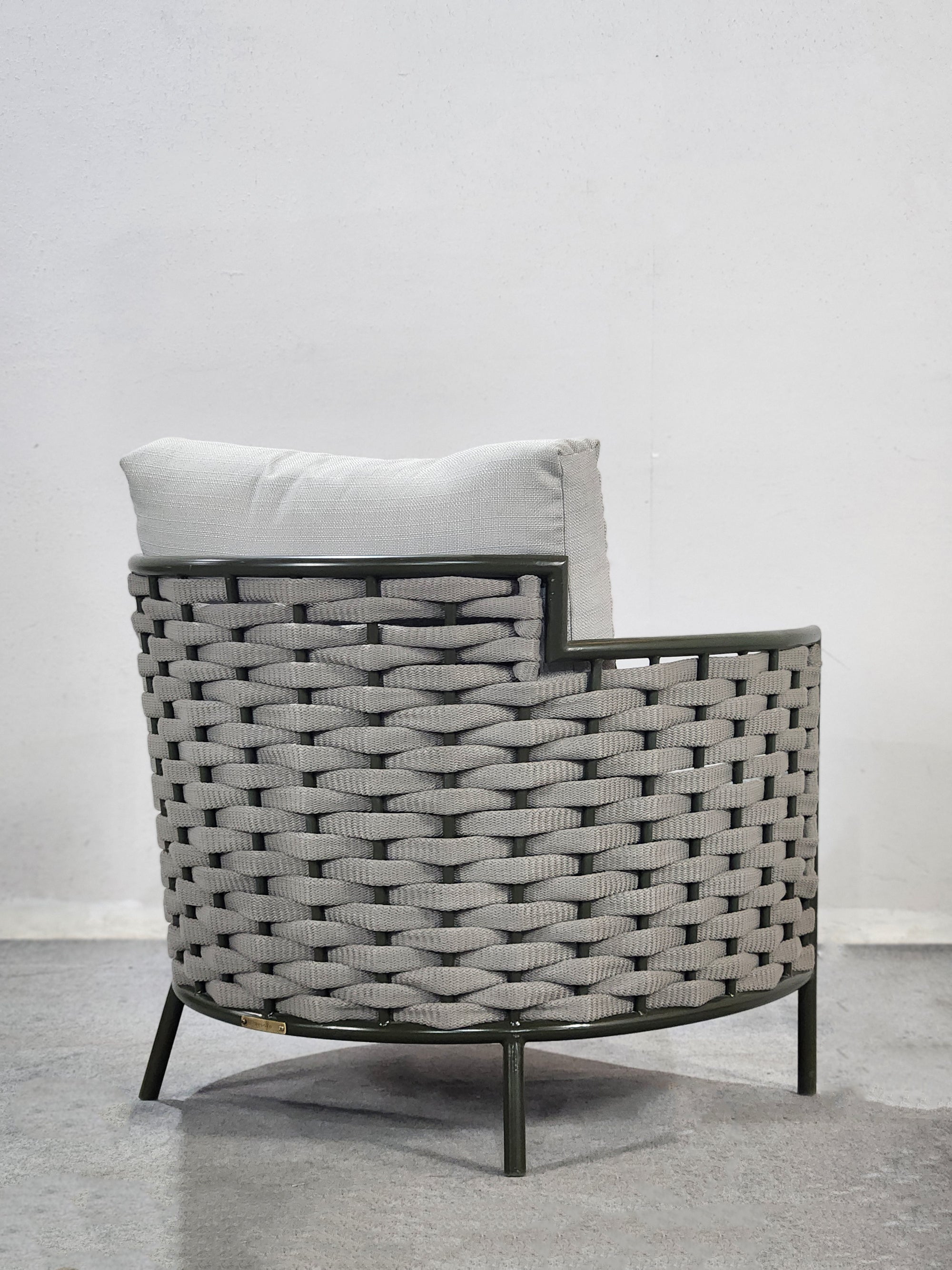 SOFASTRUCTURE IN POWDER COATED ALUMINIUM FRAME AND BRAID.LUXURIOUS SOFT CUSHIONS IN THE FINEST EUROPEAN FABRIC .